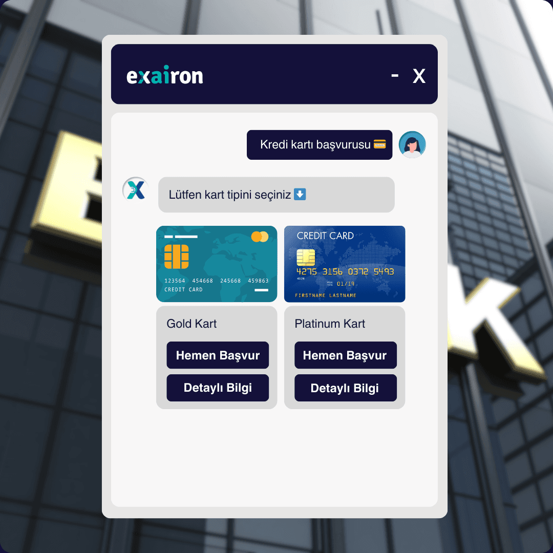 Exairon, entegre ve otonom bir platform olarak sanal asistanlar aracılığıyla müşterilere 7/24 hizmet verebilir; temel soruları yanıtlayabilir ve hesap işlemlerini hızlandırabilir.