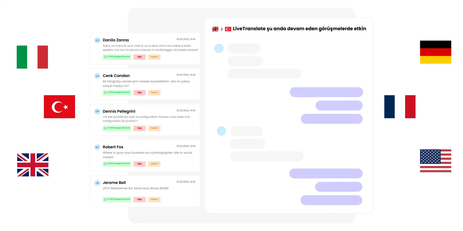 Exairon Interact’ın eş zamanlı çeviri özelliği sayesinde müşterileriniz kendi dillerinde iletişim kurarken, operatörleriniz belirlenen ekip dilinde yanıt verebilir. Bu özellik, hizmetlerinizi daha geniş coğrafyalara yaymanıza ve farklı dil geçmişine sahip müşterilere hitap etmenize olanak tanır. Dil engellerini ortadan kaldırarak küresel pazarlarda kesintisiz hizmet sunma kabiliyetinizi artırır.